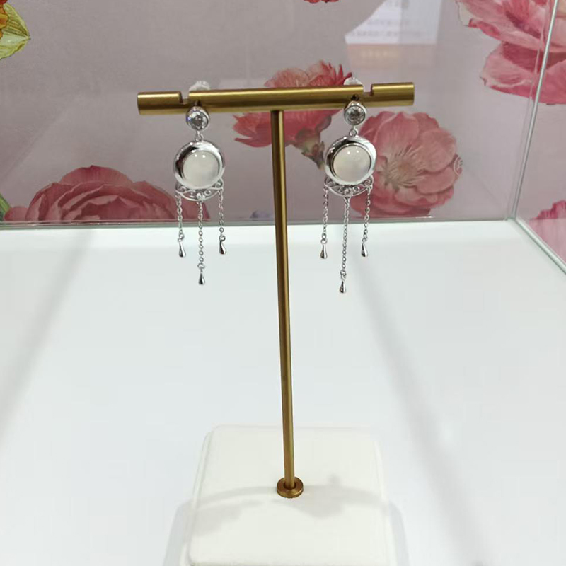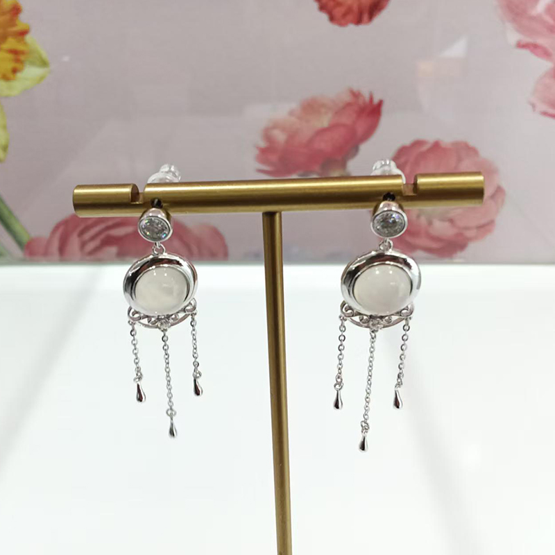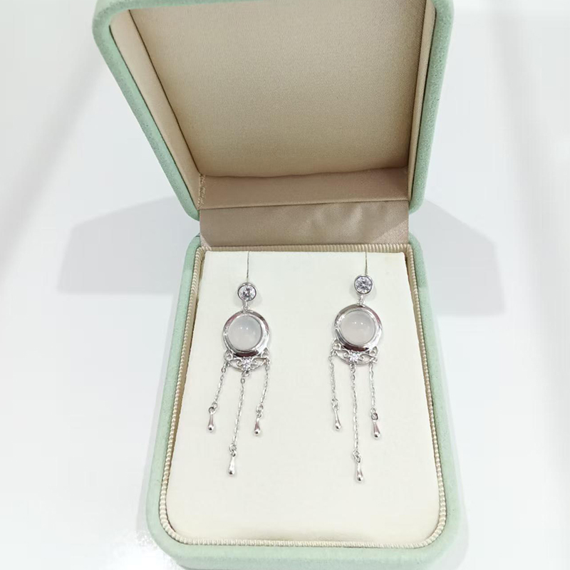 S925 sterling silver plated with white gold, inlaid with white chalcedony