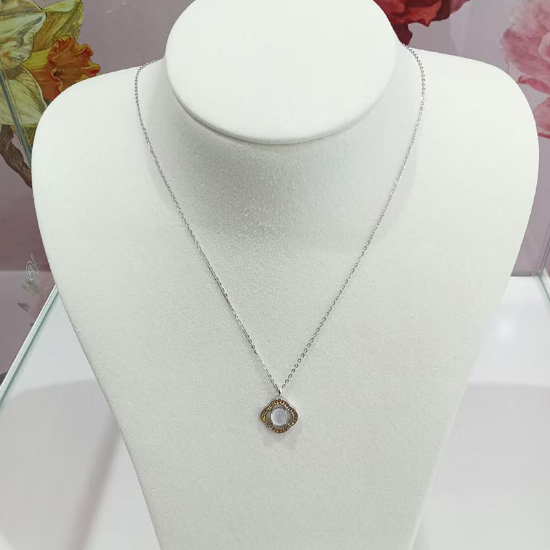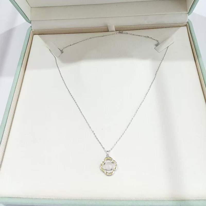 S925 sterling silver plated with white gold, inlaid with white chalcedony