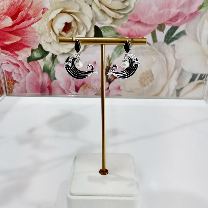 | Material | S925 Sterling Silver Plated with White Gold Painted Finish Freshwater Pearl Black Zircon + White Zircon |