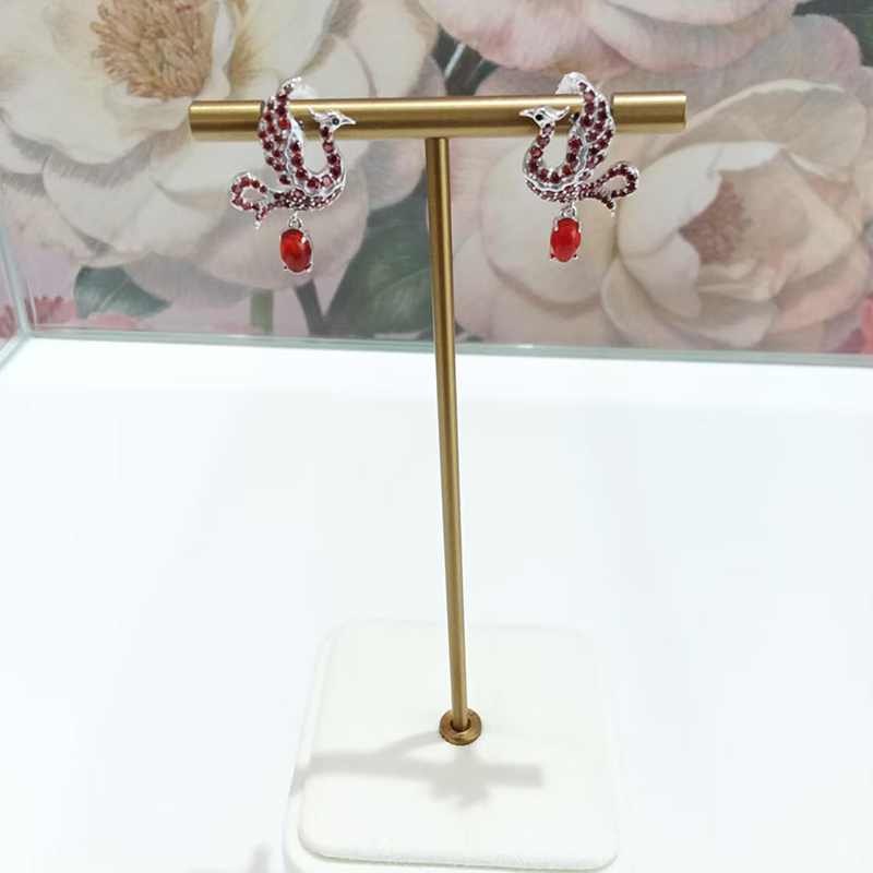 | Material | S925 sterling silver plated with white gold, garnet red zircon, nano black zircon for the eye, and oval-shaped red agate. |