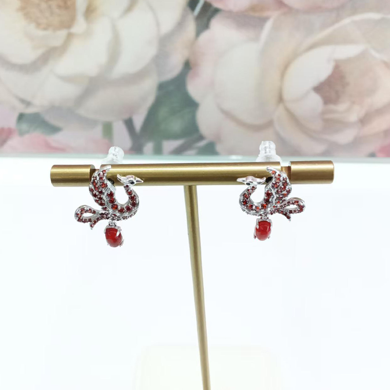 | Material | S925 sterling silver plated with white gold, garnet red zircon, nano black zircon for the eye, and oval-shaped red agate. |